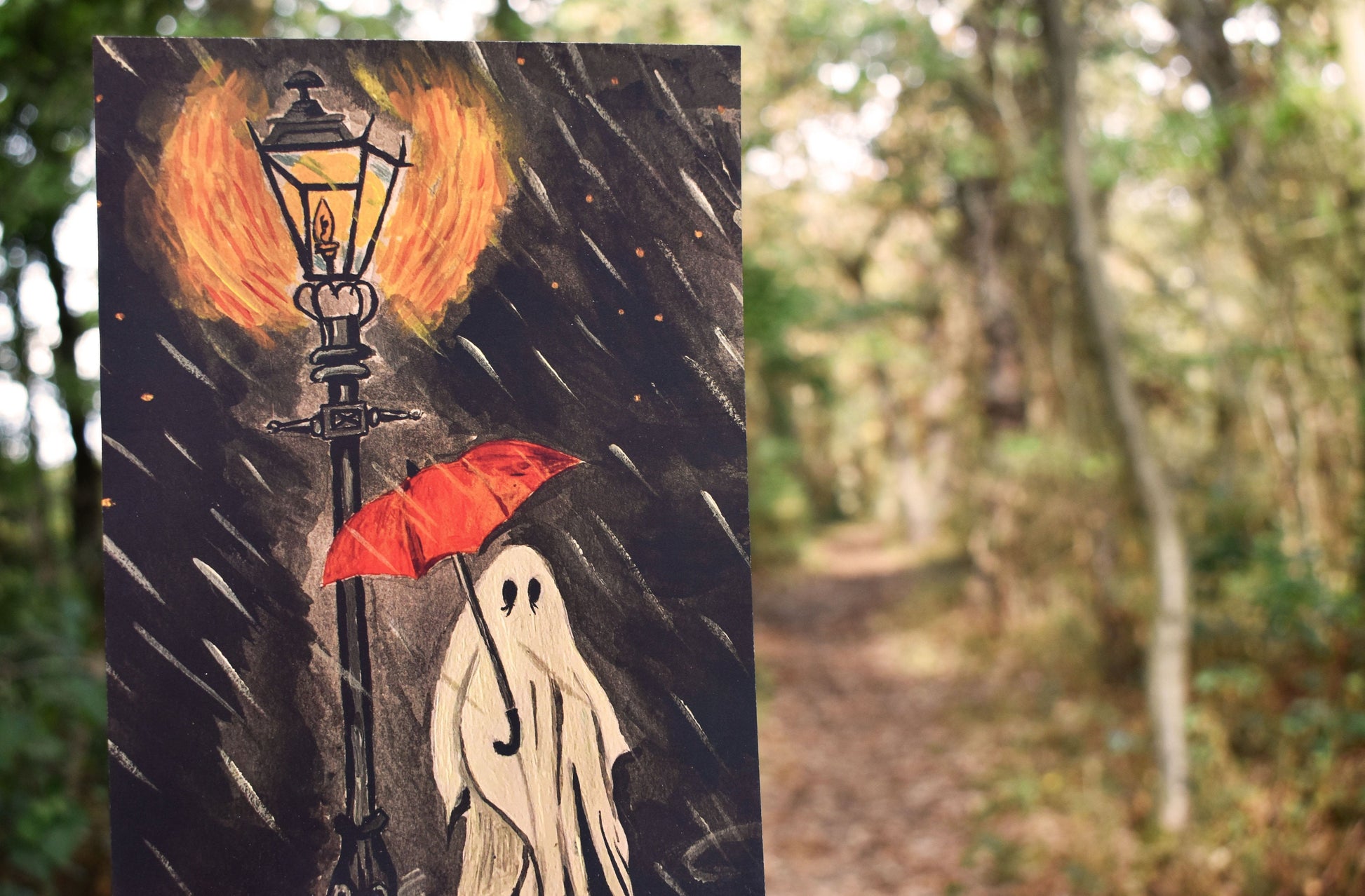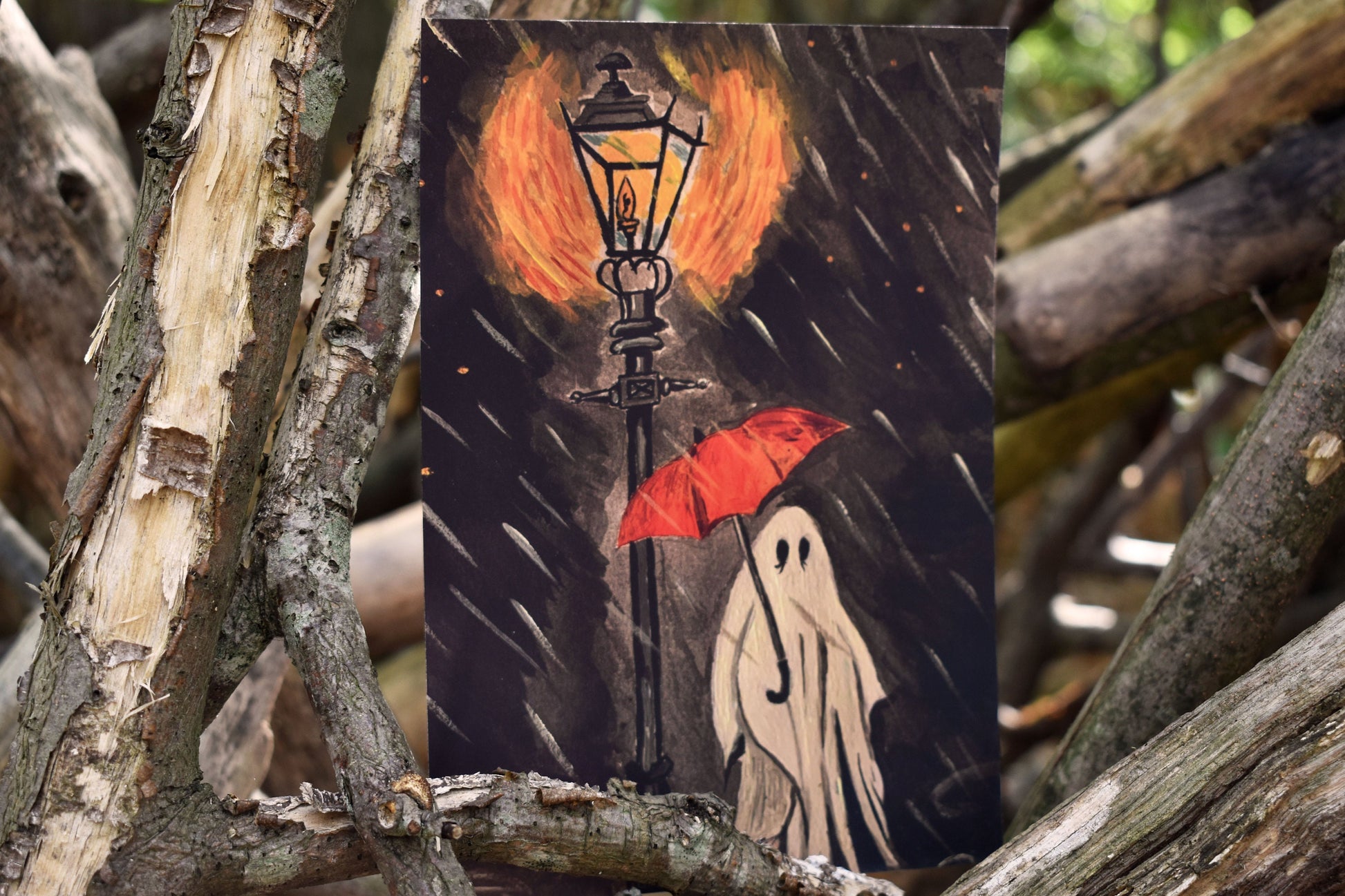 Ghost in The Rain Heavyweight Art Print, A5 “Underneath The Street Lights” -ihadotherplans