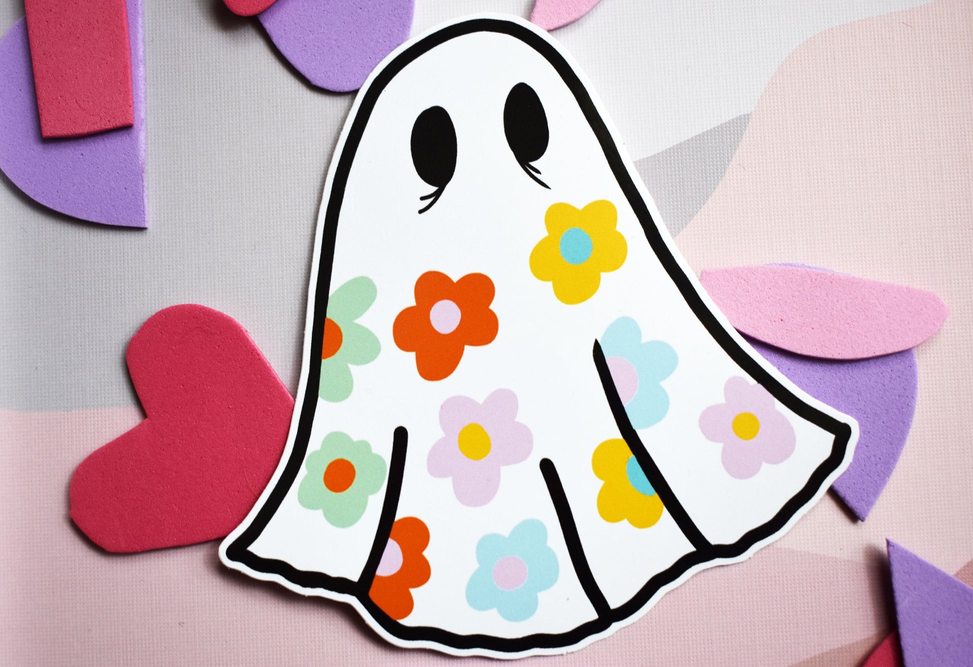 Retro Flower Sheet Ghost Die-Cut Glossy Sticker, 10 x 10cm -ihadotherplans