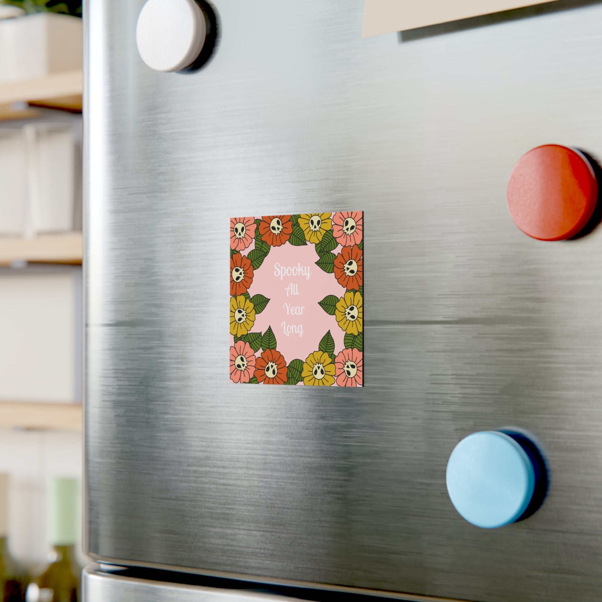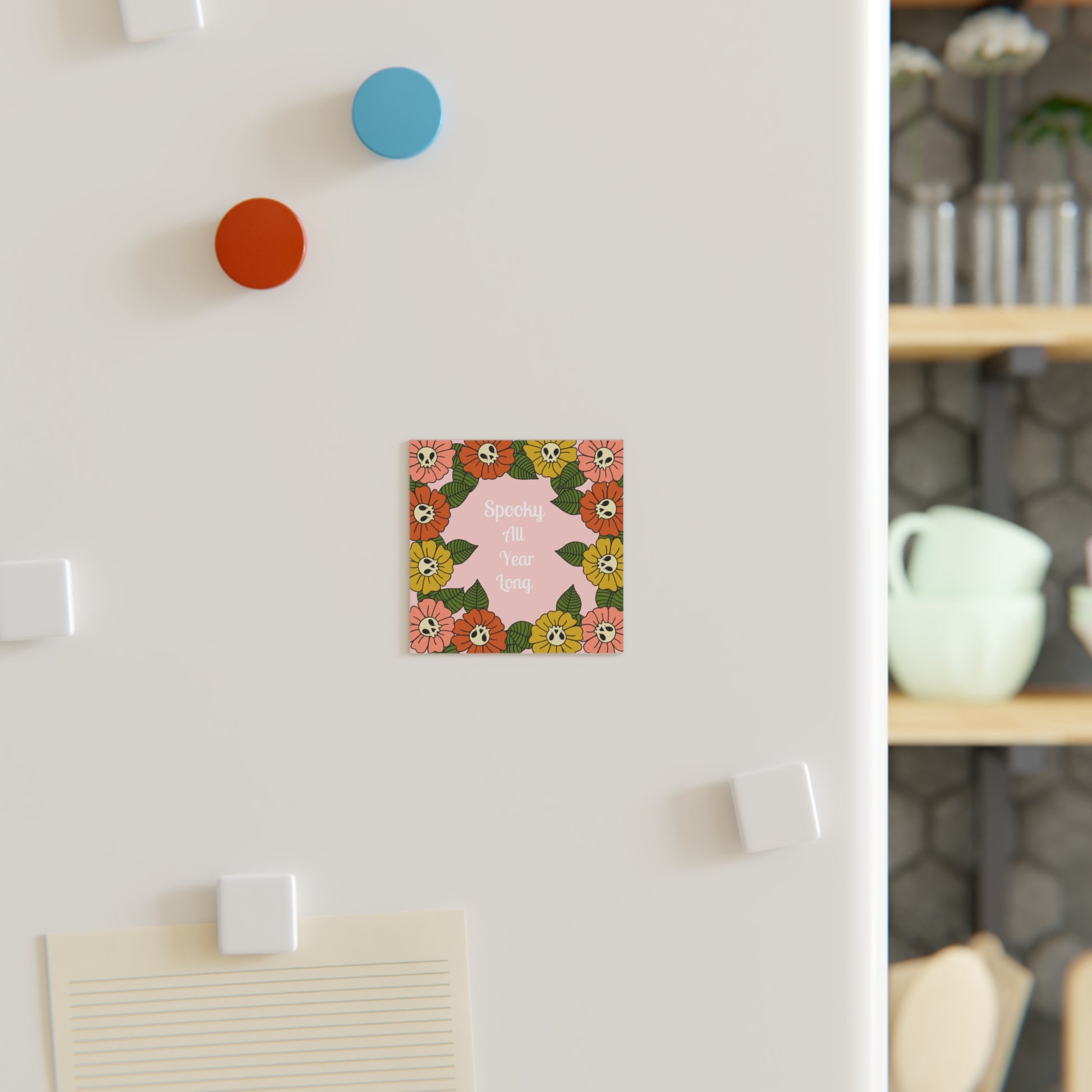 Spooky Skull Flowers Square Magnet 3 x 3 inches - ihadotherplans